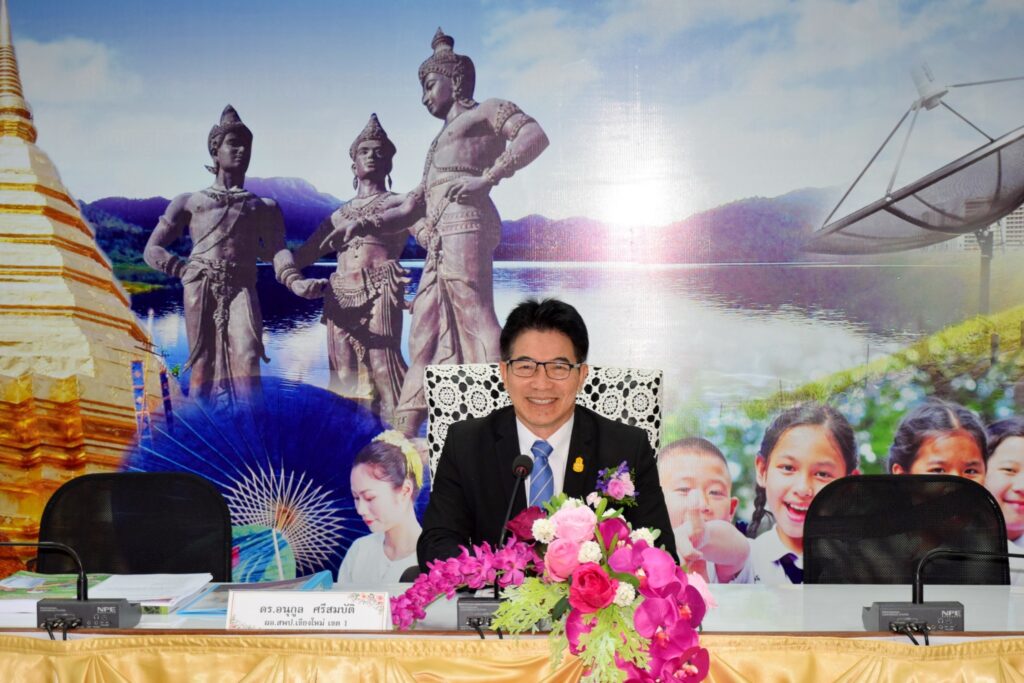 ดร.อนุกูล ศรีสมบัติ ผู้อำนวยการสำนักงานเขตพื้นที่การศึกษาประถมศึกษาเชียงใหม่ เขต 1 (ผอ.สพป.เชียงใหม่ เขต 1) ประธานคณะกรรมการ พร้อมด้วย ดร.สุชน วิเชียรสรรค์ อดีตผู้อำนวยการสำนักงานเขตพื้นที่การศึกษามัธยมศึกษาเชียงใหม่ กรรมการ นายพรชัย จันทะสาร รอง ผอ.สพป.ลำปาง เขต 2 กรรมการและเลขานุการ นางสาวพรรณี จันทร์แก้ว ผู้อำนวยการกลุ่มบริหารงานบุคคล สพป.เชียงใหม่ เขต 1 ผู้ช่วยเลขานุการ คณะกรรมการประเมินสัมฤทธิผลการปฏิบัติงานในหน้าที่ เพื่อพัฒนาการศึกษา ตำแหน่งรองผู้อำนวยการสำนักงานเขตพื้นที่การศึกษา(สพท.) สังกัดสำนักงานคณะกรรมการการศึกษาขั้นพื้นฐาน (สพฐ.) ตามข้อตกลงในการพัฒนางานในหน้าที่ (Performance Agreement) ในระยะเวลา 1 ปี ครั้งที่ 1 (รอบ 6 เดือนแรก) เขตตรวจราชการที่ 15 จำนวน 5 ราย วันที่ 12 ธันวาคม 2566 ณ ห้องประชุมล้านนา สพป.เชียงใหม่ เขต 1 และผ่านระบบออนไลน์ Zoom Meeting