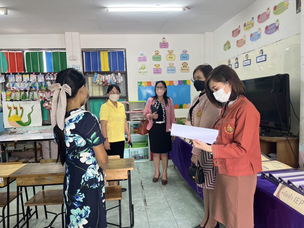 วันที่ 22 มีนาคม 2566 ดร.อนุกูล ศรีสมบัติ ผู้อำนวยการสำนักงานเขตพื้นที่การศึกษาประถมศึกษาเชียงใหม่ เขต 1 (ผอ.สพป.เชียงใหม่ เขต 1) มอบหมายให้ นางสุนิทรา พรมมล ผู้อำนวยการกลุ่มนิเทศ ติดตาม และประเมินผลการจัดการศึกษา พร้อมด้วย นางสาวมณฑาทิพย์ ขันแก้ว, นางสาวแพรวนภา สารกา ศึกษานิเทศก์ และนางสาวชลณัฐ วงค์สถาน นักจิตวิทยาโรงเรียนประจำสำนักงานเขตพื้นที่การศึกษา ดำเนินการนิเทศ ติดตามโครงการพัฒนาคุณภาพการจัดการศึกษาเรียนรวม จากแผนงานพื้นฐานด้านการพัฒนาและเสริมสร้างศักยภาพทรัพยากรมนุษย์ นโยบายที่ 4 ด้านการสร้างโอกาสในการเข้าถึงบริการการศึกษาที่มีคุณภาพมีมาตรฐาน และลดความเหลื่อมล้ำทางการศึกษาเพื่อให้ผู้เรียนระดับการศึกษาขั้นพื้นฐานที่มีความต้องการพิเศษได้รับการดูแล ช่วยเหลือ และส่งเสริมให้ได้รับการศึกษาเต็มตามศักยภาพและมีการนิเทศ ติดตาม ประเมินผลและช่วยเหลือสถานศึกษาเรียนรวมให้มีคุณภาพตามโครงการพัฒนาคุณภาพการจัดการศึกษาเรียนรวม โรงเรียนในสังกัด สพป.เชียงใหม่ เขต 1 จำนวน 3 โรงเรียน ได้แก่ โรงเรียนบ้านบ่อหิน อำเภอดอยสะเก็ด โรงเรียนวัดช่างเคี่ยน และโรงเรียนบ้านดอนปิน อำเภอเมืองเชียงใหม่