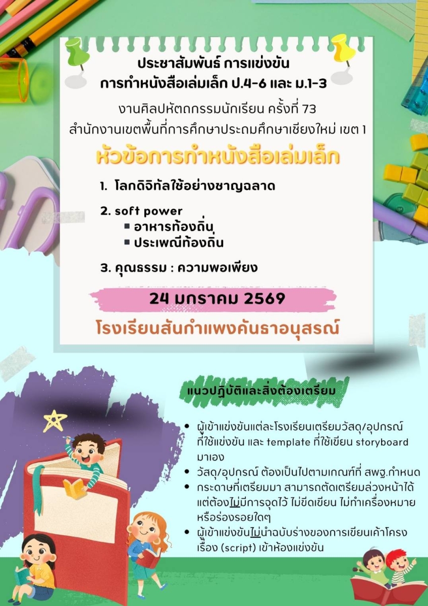 โครงงานคุณธรรม ทุกระดับชั้น ให้ส่งเล่ม ให้คณะกรรมการ ภายในวันที่ 22 มกราคม 2569