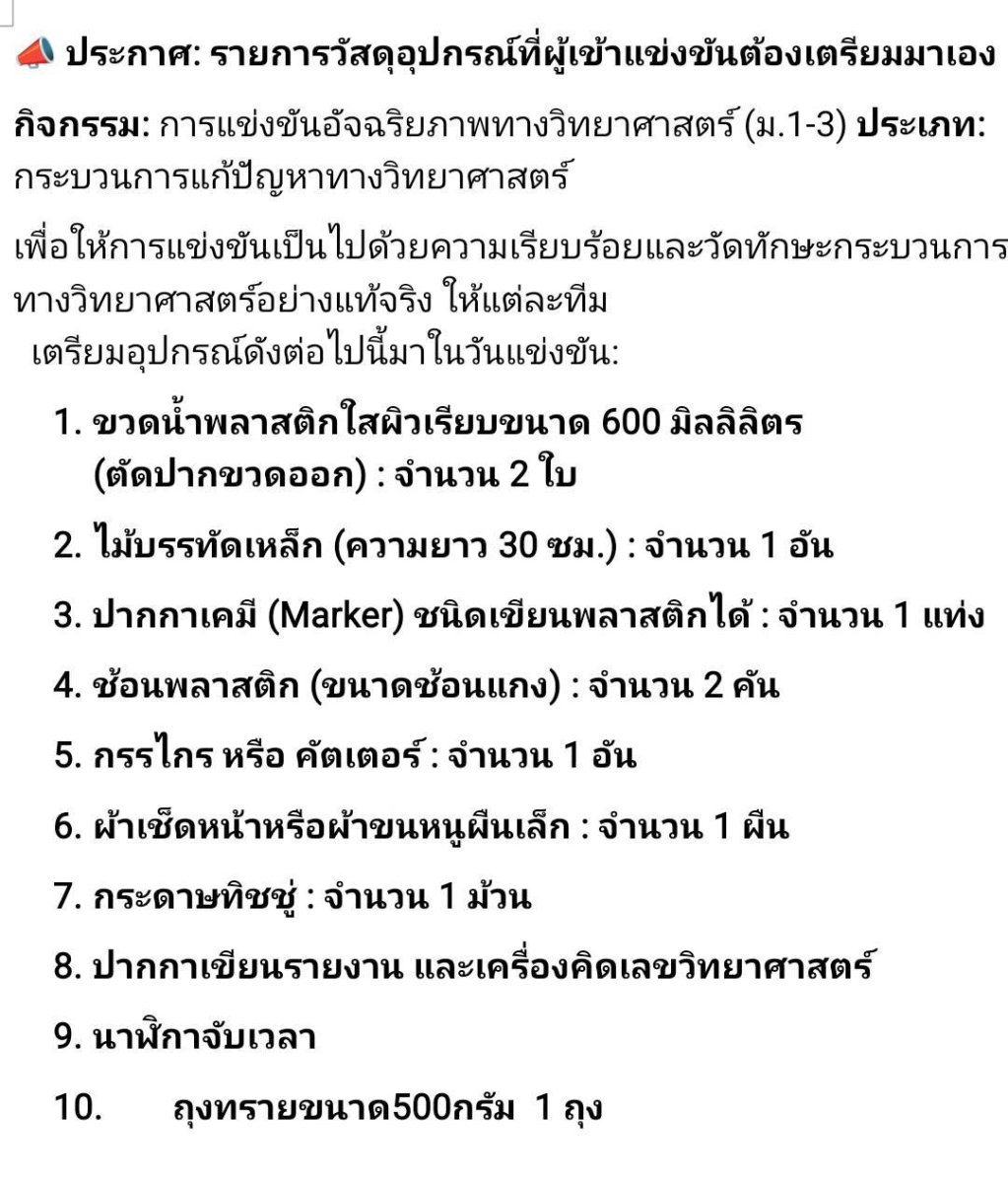 ► ระดับมัธยมศึกษา ให้มารายงานตัวและเริ่มการแข่งขัน เวลา 13.00 น.