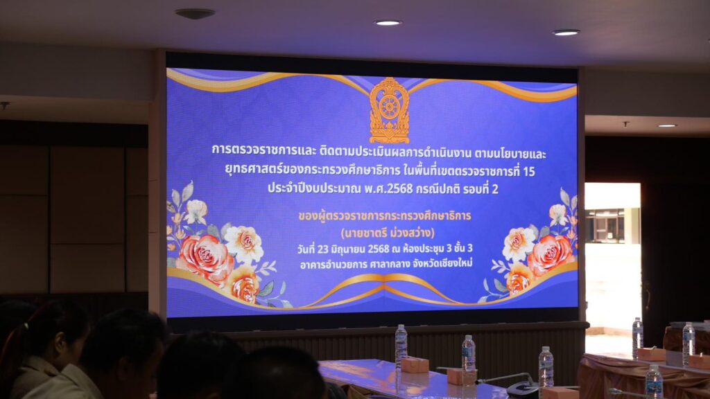 วันที่ 23 มิถุนายน 2568 สำนักงานเขตพื้นที่การศึกษาประถมศึกษาเชียงใหม่ เขต 1 ได้รับการตรวจราชการและติดตามการขับเคลื่อนโยบายของกระทรวงศึกษาธิการ รอบที่ 2 ประจำปีงบประมาณ พ.ศ. 2568 ในพื้นที่ตรวจราชการที่ 15 ณ ห้องประชุม 3 ชั้น 3 อาคารอำนวยการ ศาลากลางจังหวัดเชียงใหม่ โดยมี นายชาตรี ม่วงสว่าง ผู้ตรวจราชการกระทรวงศึกษาธิการ เป็นประธานในการตรวจราชการ