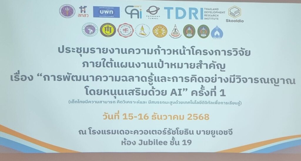 วันที่ 15 ธันวาคม พ.ศ. 2568 ดร.อนุกูล ศรีสมบัติ ผอ.สพป.เชียงใหม่ เขต 1 ได้เป็นประธานในการประชุมรายงานความก้าวหน้าโครงการวิจัย “ การพัฒนาความฉลาดรู้และการคิดอย่างมีวิจารณญาณโดยทีมหนุนเสริมด้วย AI ” การประชุมครั้งนี้มุ่งเน้นการตรวจสอบและประเมินผลการดำเนินงานของกลไกต่างๆ ที่ถูกกำหนดขึ้นเพื่อนำเทคโนโลยีดิจิทัลมาใช้ในการยกระดับคุณภาพการเรียนการสอน การบริหารจัดการ และการเข้าถึงโอกาสทางการศึกษา โดยมีวัตถุประสงค์เพื่อศึกษา,พัฒนา,ขับเคลื่อนและประเมินองค์ประกอบสร้างความเข้าใจกลไกการขับเคลื่อนระบบนิเวศทางการศึกษาด้วยเทคโนโลยีดิจิทัลเพื่อการเรียนรู้ฯ ณ โรงแรมเดอะควอเตอร์ รัชโยธิน กทม.