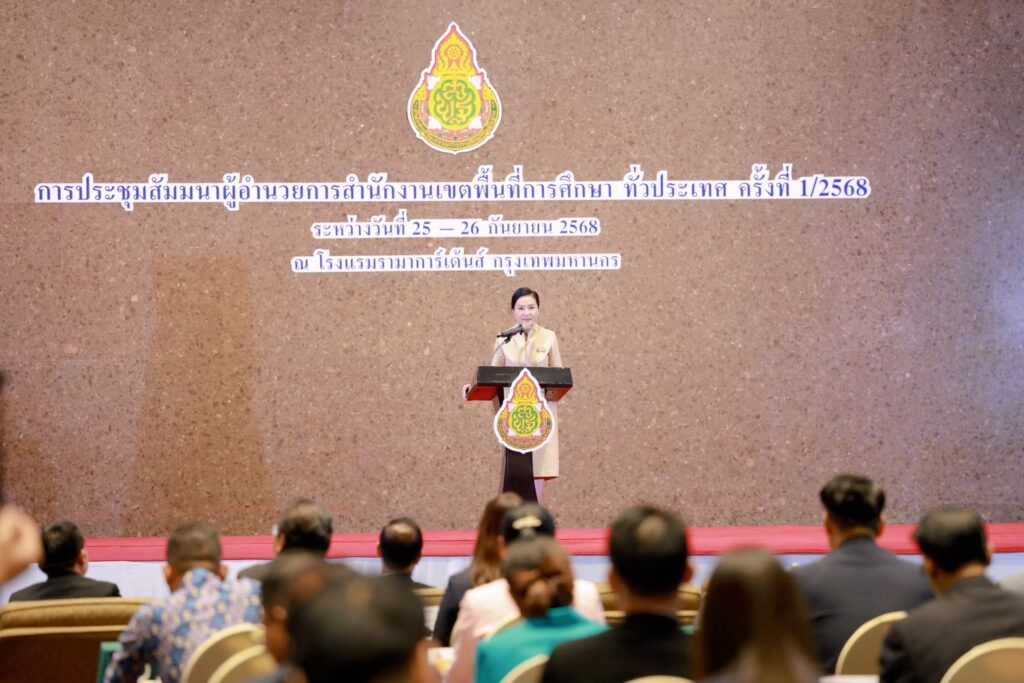 วันที่ 25 กันยายน 2568 ดร.อนุกูล ศรีสมบัติ ผอ.สพป.เชียงใหม่ เขต 1 เข้าร่วมประชุมสัมมนาผู้อำนวยการสำนักงานเขตพื้นที่การศึกษาทั่วประเทศ ครั้งที่ 1/2568 โดย ศ.ดร.นฤมล ภิญโญสินวัฒน์ รัฐมนตรีว่าการกระทรวงศึกษาธิการ (รมว.ศธ.) เป็นประธานในพิธีเปิดการประชุมสัมมนาผู้อำนวยการสำนักงานเขตพื้นที่การศึกษาทั่วประเทศ ครั้งที่ 1/2568 เพื่อพบปะและพูดคุยถึงแนวทางการทำงานด้านการขับเคลื่อนการศึกษา โดยมีผู้บริหารของ สพฐ. ได้แก่ ว่าที่ร้อยตรี ธนุ วงษ์จินดา เลขาธิการคณะกรรมการการศึกษาขั้นพื้นฐาน (เลขาธิการ กพฐ.) นายพัฒนะ พัฒนทวีดล รองเลขาธิการ กพฐ. นายธีร์ ภวังคนันท์ รองเลขาธิการ กพฐ. รวมถึงผู้อำนวยการสำนักงานเขตพื้นที่การศึกษา ทั้ง 245 เขตทั่วประเทศ ผู้อำนวยการสำนัก ผู้เชี่ยวชาญ และบุคลากรของ สพฐ. เข้าร่วมกว่า 350 คน ณ ห้องคอนเวนชั่น เซ็นเตอร์ โรงแรมรามาการ์เด้นส์ กรุงเทพมหานคร
